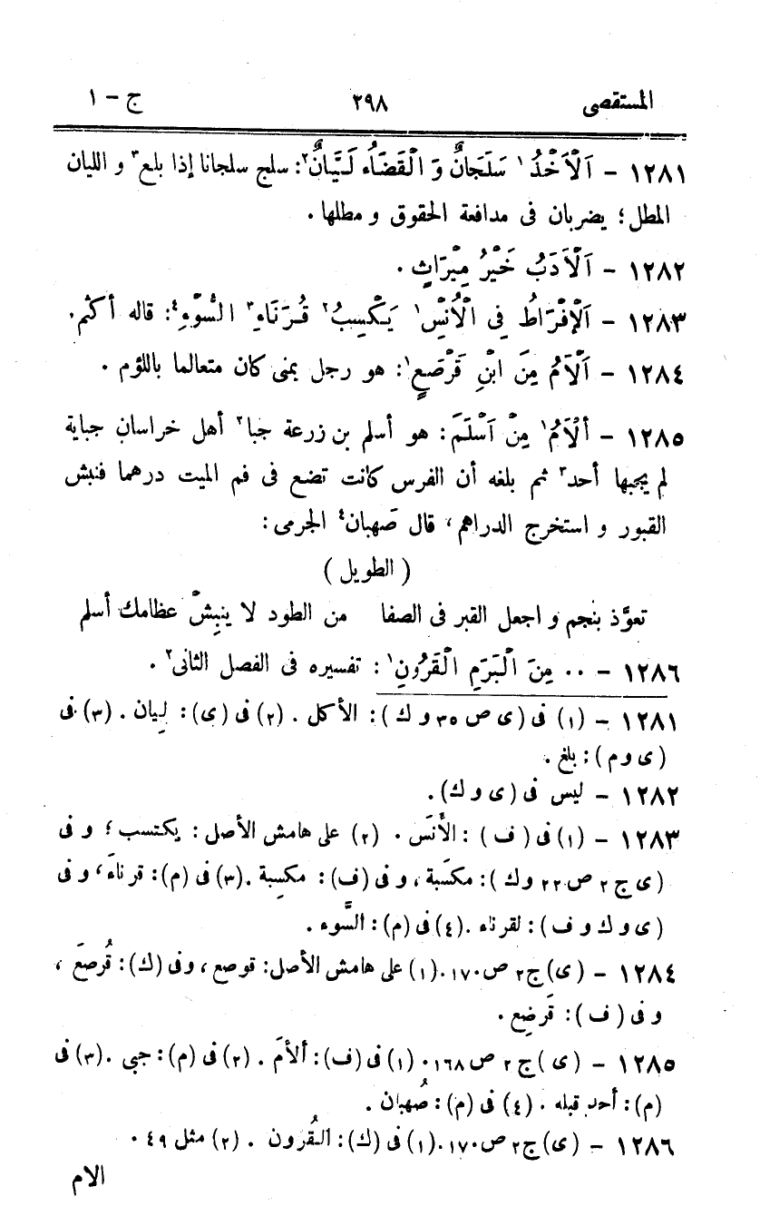 1285 - ألام من اسْلَمْ هُوَ أسلم بن زرْعَة جبا أهل خُرَاسَان جباية لم يجبها أحد ثمَّ بلغه أَن الْفرس كَانَت تضع فِي فَم الْمَيِّت درهما فنبش الْقُبُور واستخرج الدَّرَاهِم قَالَ صهْبَان الْجرْمِي