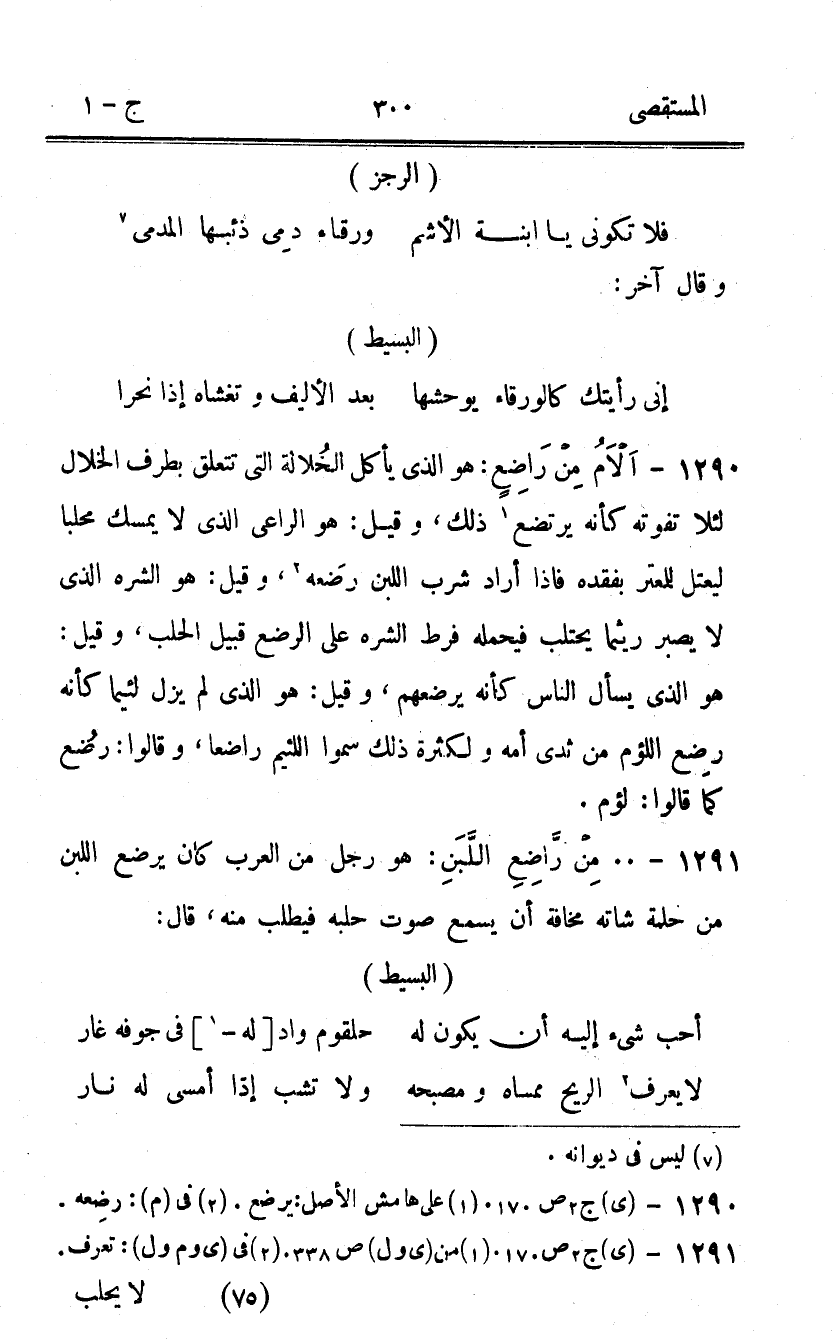 1291 - 00 من راضع اللَّبن هُوَ رجل من الْعَرَب كَانَ يرضع اللَّبن من حلمة شاته مَخَافَة أَن يسمع صَوت حلبه فيطلب مِنْهُ قَالَ