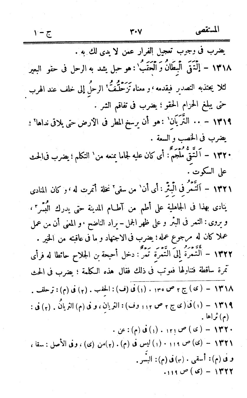 1322 - ألتمرة إِلَى التمرة تمر دخل أحيحة بن الجلاح حَائِطا لَهُ فَرَأى تَمْرَة سَاقِطَة فَتَنَاولهَا فعوتب فى ذَلِك فَقَالَ هَذِه الْكَلِمَة يضْرب فِي الْحَث