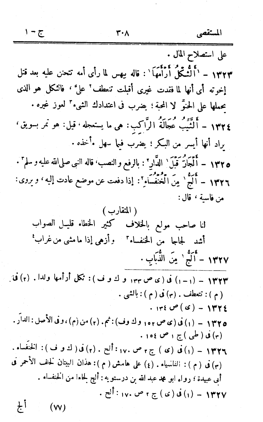 1326 - ألج من الخنفساء إِذا دفعت عَن مَوضِع عَادَتْ إِلَيْهِ ويروى من فاسية قَالَ