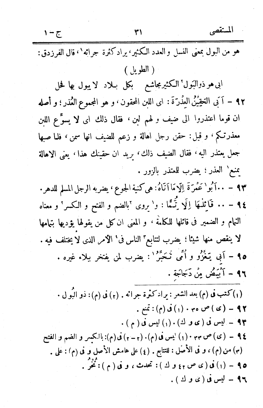 (أيى هُوَ ذُو الْبَوْل الْكثير مجاشع ... بِكُل بِلَاد لَا يَبُول بهَا فَحل)