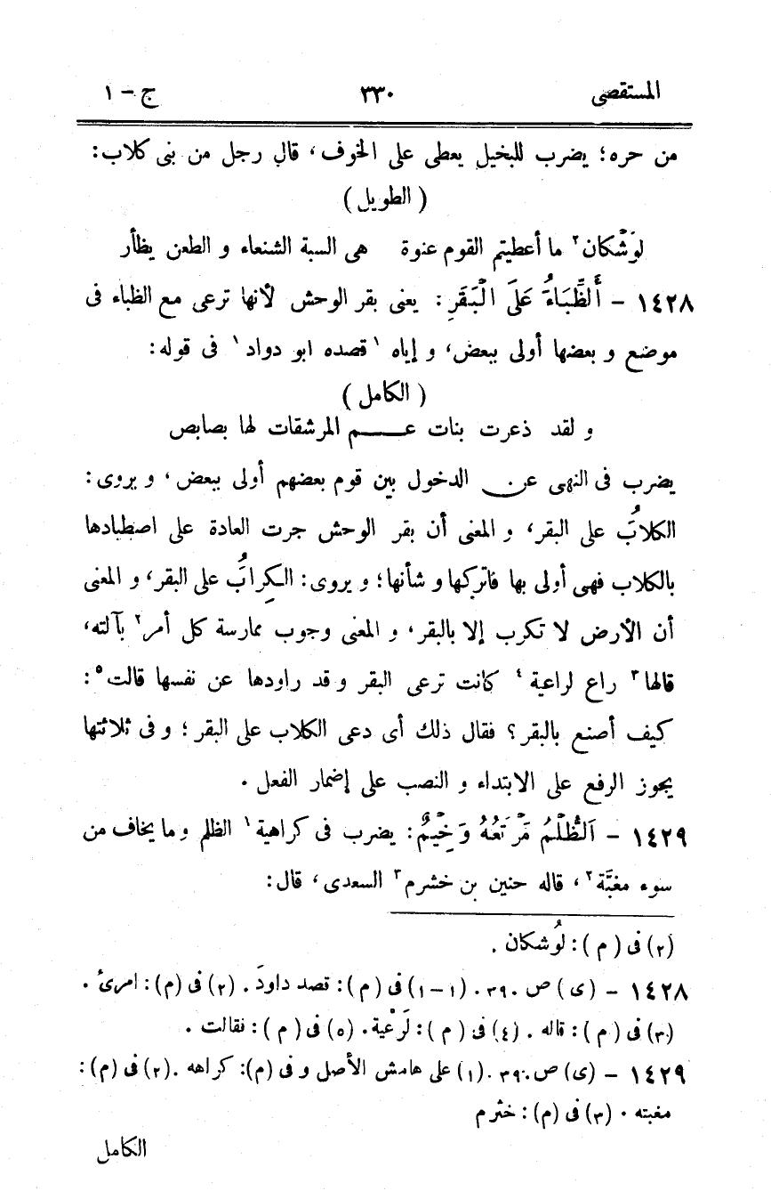 1428 - ألظباء على الْبَقر يَعْنِي بقر الْوَحْش لِأَنَّهَا ترعى مَعَ الظباء فِي مَوضِع وَبَعضهَا أولى بِبَعْض وإياه قَصده أَبُو دواد فِي قَوْله