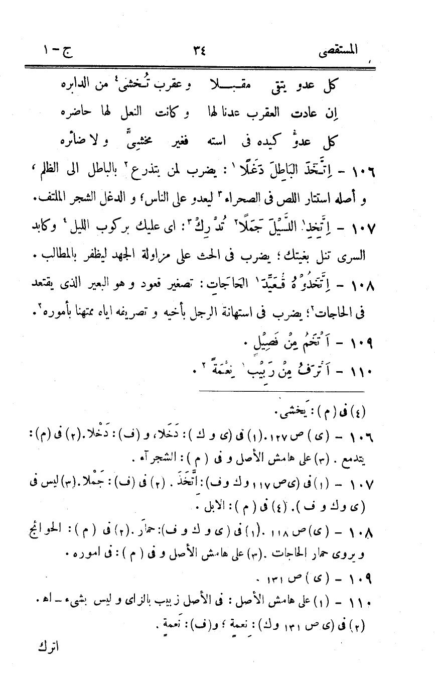 107 - اتخذ اللَّيْل جملا تدْرك أَي عَلَيْك بركوب اللَّيْل وكابد السرى تنَلْ بغيتك يضْرب فِي الْحَث على مزاولة الْجهد ليظفر بالمطالب