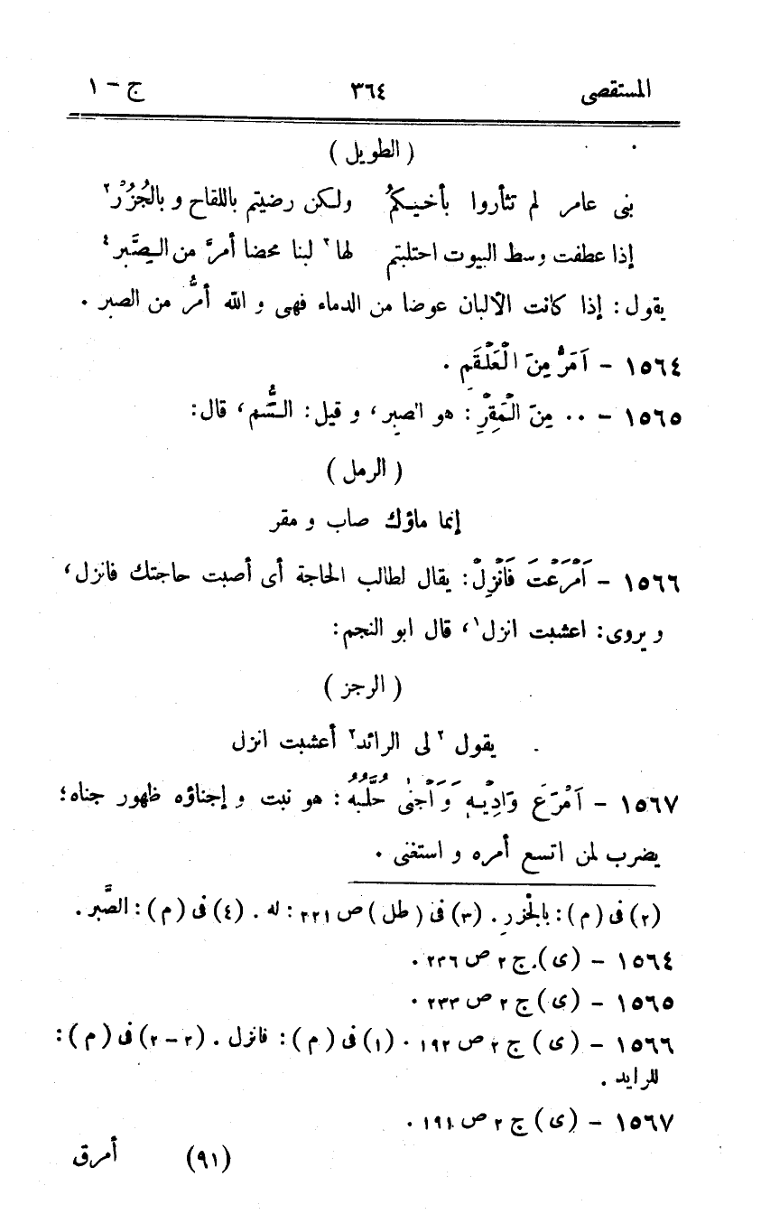 1565 - 0 من الْمقر هُوَ الصَّبْر وَقيل السم قَالَ