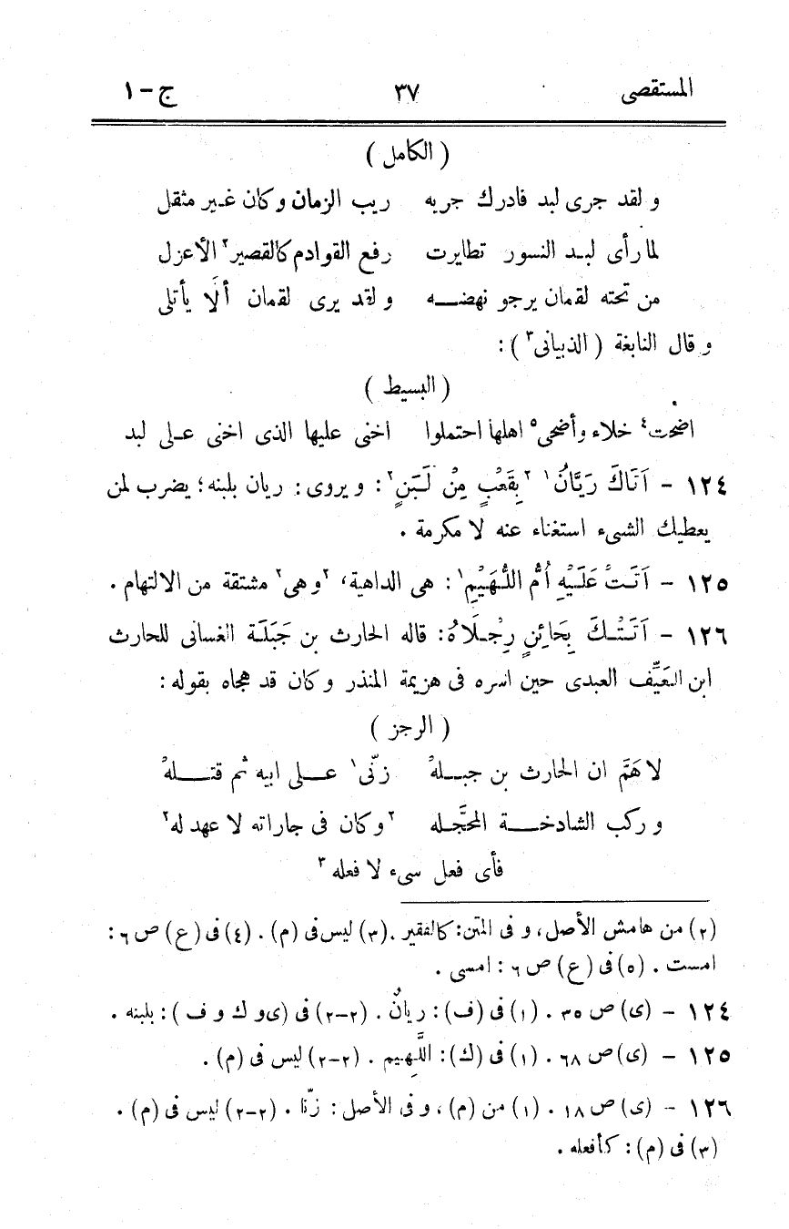 126 - اتتك بحائن رِجْلَاهُ قَالَه الْحَارِث بن جبلة الغساني لِلْحَارِثِ ابْن العيف الْعَبْدي حِين أسره فِي هزيمَة الْمُنْذر وَكَانَ قد هجاه بقوله