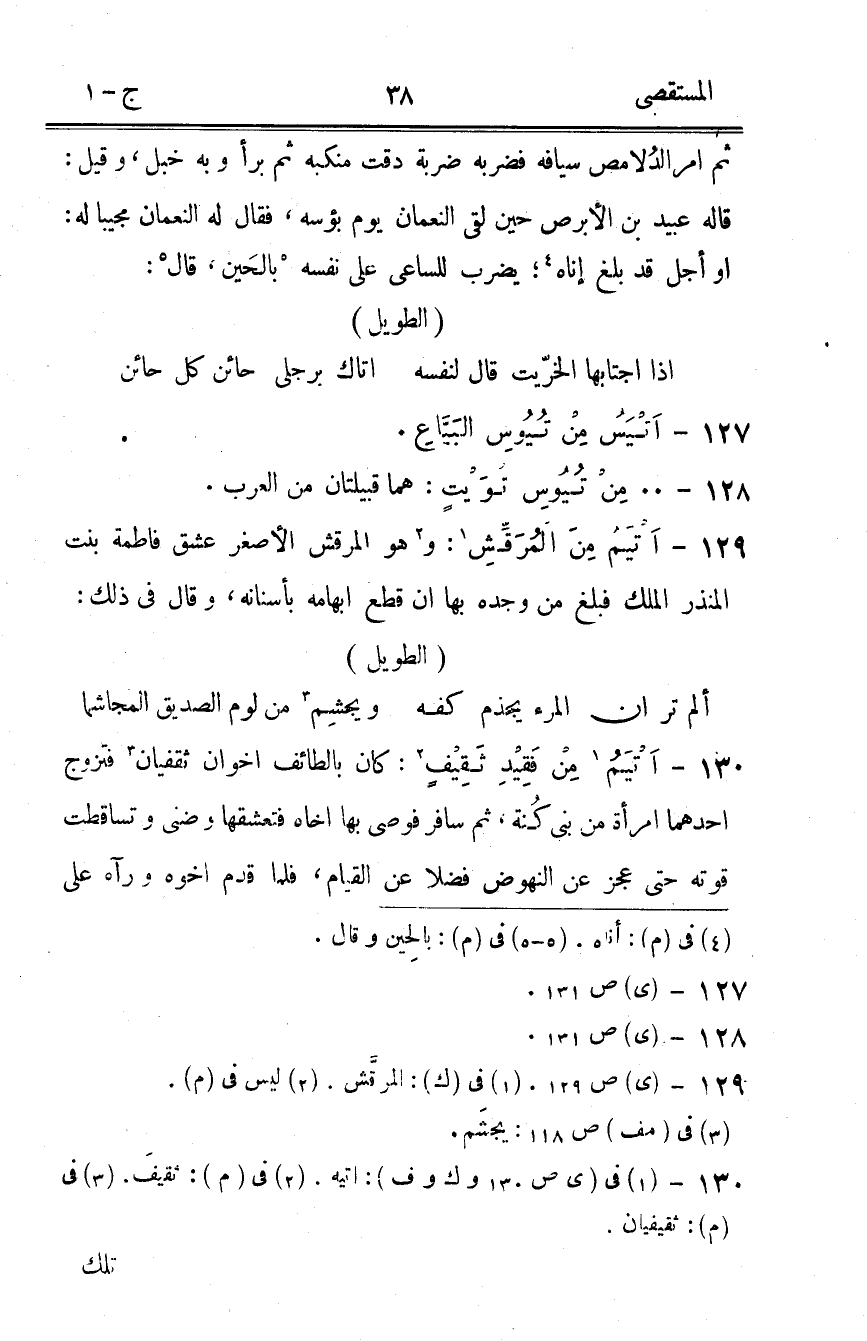 130 - أتيم من فقيد ثَقِيف كَانَ بِالطَّائِف أَخَوان ثقفيان فَتزَوج أَحدهمَا امْرَأَة من نَبِي كنة ثمَّ سَافر فوصى بهَا أَخَاهُ فتعشقها وضنى وتساقطت قوته حَتَّى عجز عَن النهوض فضلا عَن الْقيام فَلَمَّا قدم أَخُوهُ وَرَآهُ على