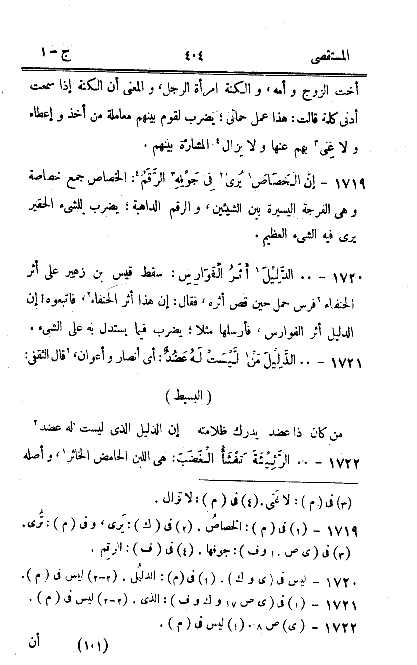 1721 - 00 الذَّلِيل من لَيست لَهُ عضد أى أنصار وَأَعْوَان قَالَ الثَّقَفِيّ