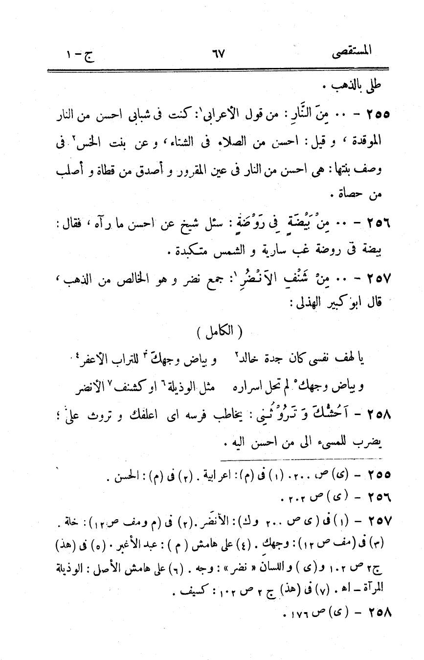 257 - 00 من شنف الأنضر جمع نضر وَهُوَ الْخَالِص من الذَّهَب قَالَ ابو كَبِير الهذلى