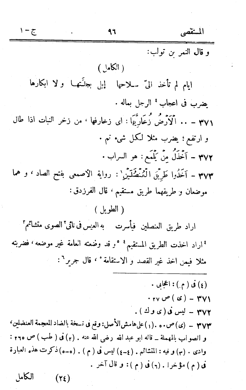 373 - اخذوا طَرِيق العنصلين رِوَايَة الْأَصْمَعِي بِفَتْح الصَّاد وهما موضعان وطريقهما طَرِيق مُسْتَقِيم قَالَ الفرزدق
