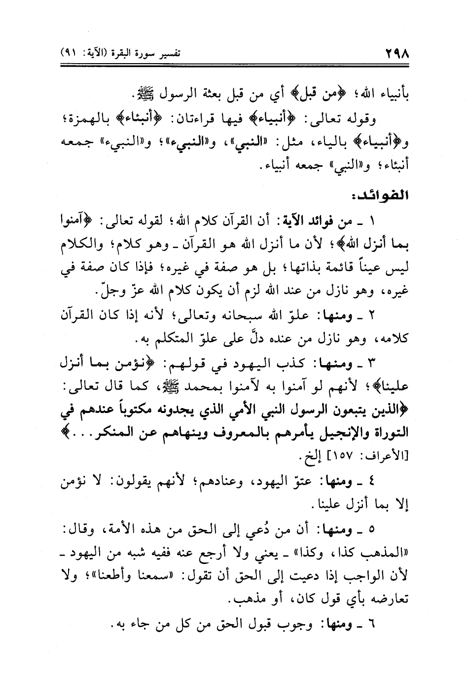 . ٣ ومنها: كذب اليهود في قولهم: {نؤمن بما أنزل علينا}؛ لأنهم لو آمنوا به لآمنوا بمحمد صلى الله عليه وسلم، كما قال تعالى: {الذين يتبعون الرسول النبي الأمي الذي يجدونه مكتوباً عندهم في التوراة والإنجيل يأمرهم بالمعروف وينهاهم عن المنكر ... } [الأعراف: ١٥٧] إلخ ..
