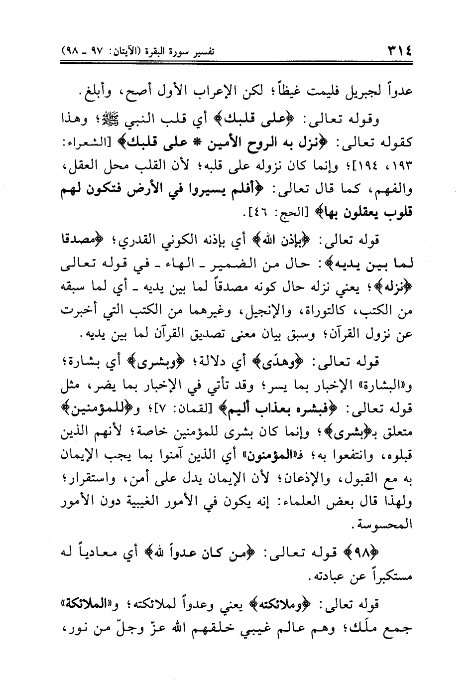 . {٩٨} قوله تعالى: {من كان عدواً لله} أي معادياً له مستكبراً عن عبادته ..