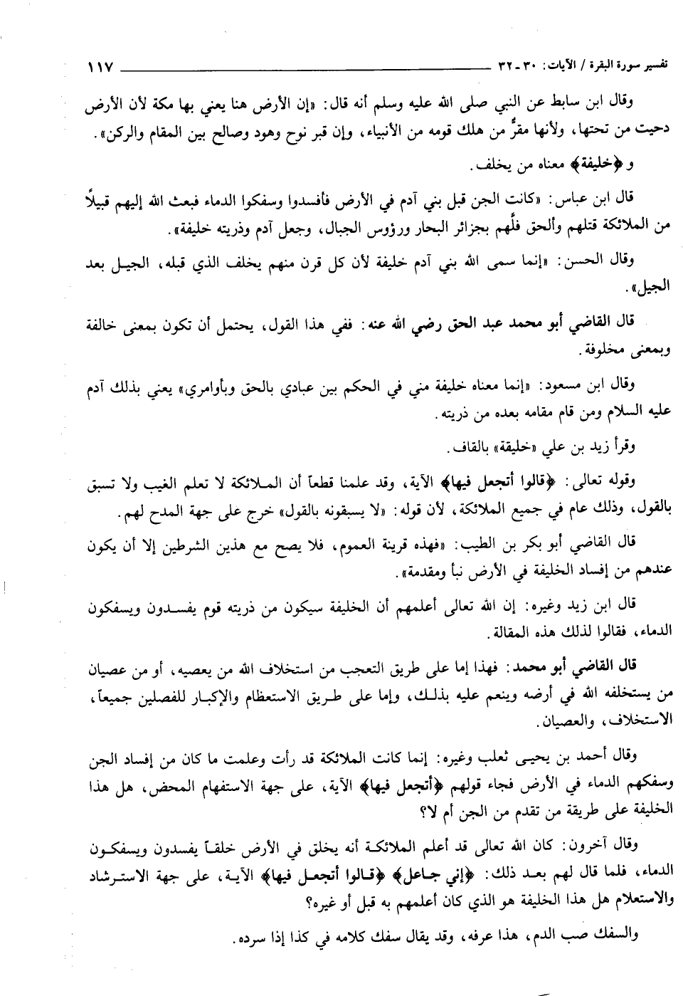 قال ابن عباس: «كانت الجن قبل بني آدم في الأرض فأفسدوا وسفكوا الدماء فبعث الله إليهم قبيلا من الملائكة قتلهم وألحق فلّهم بجزائر البحار ورؤوس الجبال، وجعل آدم وذريته خليفة» .