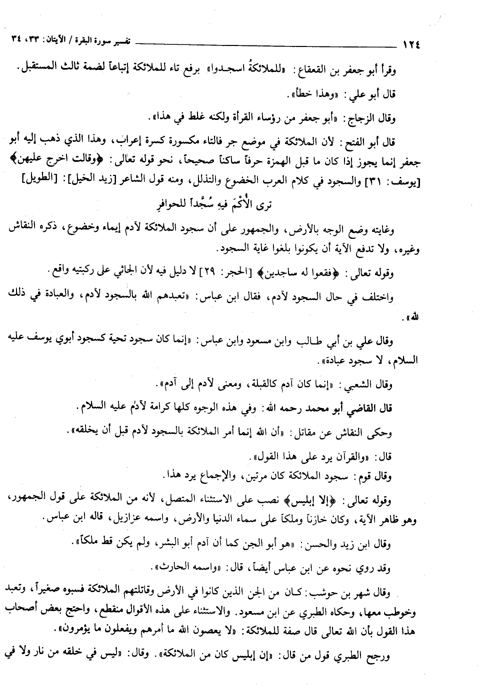 واختلف في حال السجود لآدم، فقال ابن عباس: «تعبدهم الله بالسجود لآدم، والعبادة في ذلك لله» .