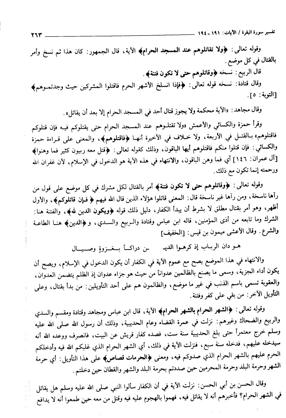 وقوله تعالى: وَلا تُقاتِلُوهُمْ عِنْدَ الْمَسْجِدِ الْحَرامِ الآية، قال الجمهور: كان هذا ثم نسخ وأمر بالقتال في كل موضع.