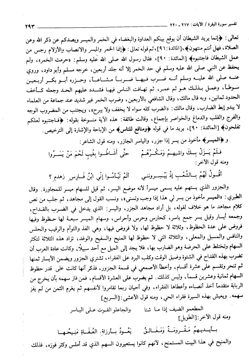 والْمَيْسِرِ مأخوذ من يسر إذا جزر، والياسر الجازر، ومنه قول الشاعر: