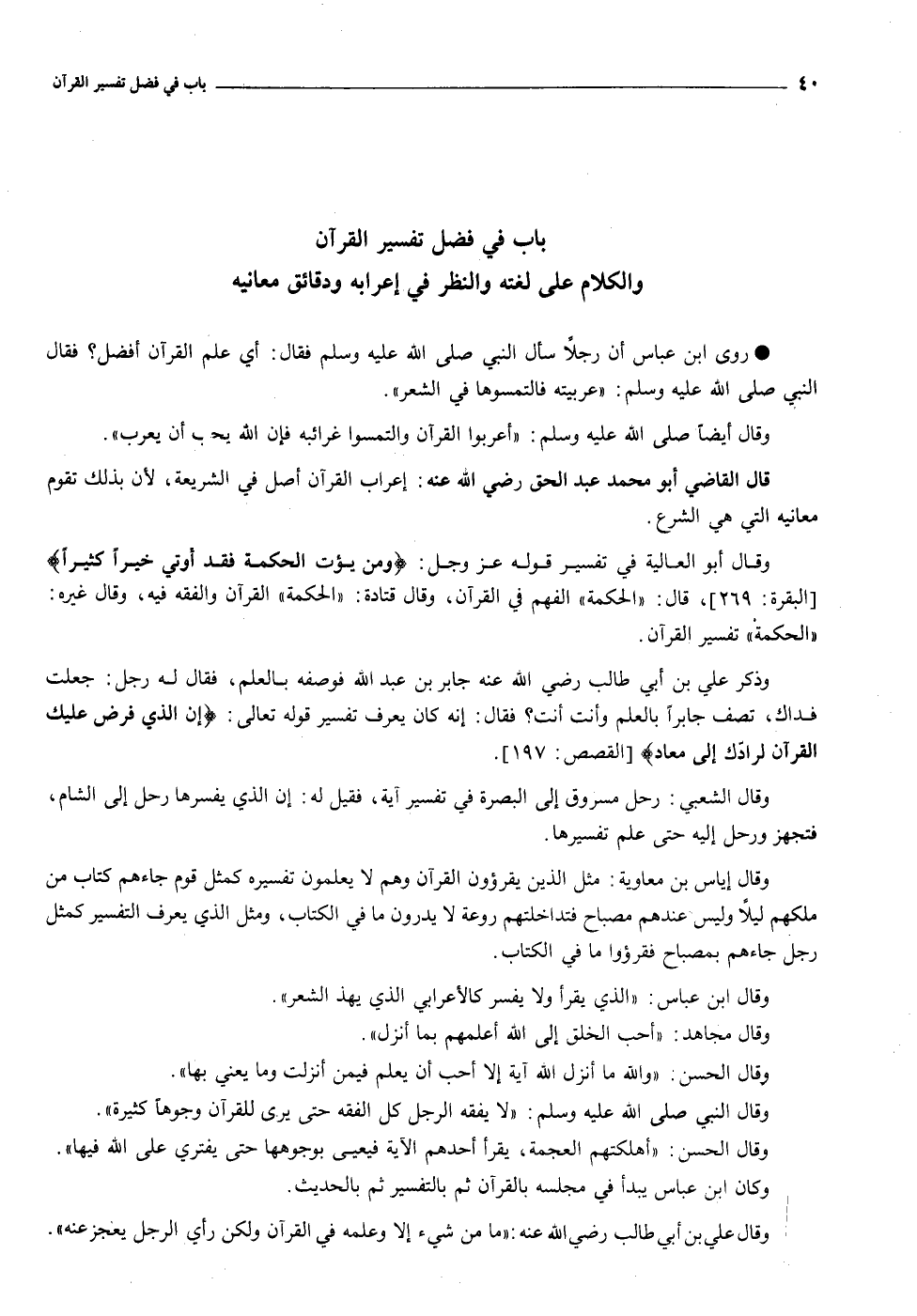 باب في فضل تفسير القرآن والكلام على لغته والنظر في إعرابه ودقائق معانيه