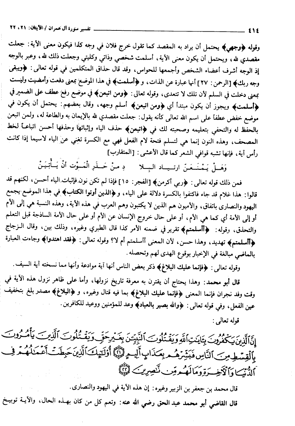 [سورة آل عمران (٣) : الآيات ٢١ الى ٢٢]