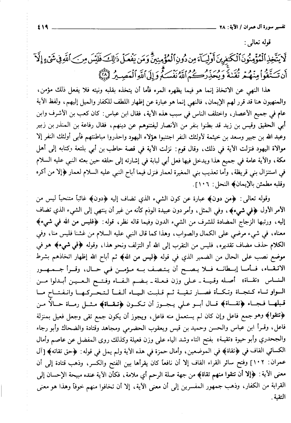 [سورة آل عمران (٣) : آية ٢٨]