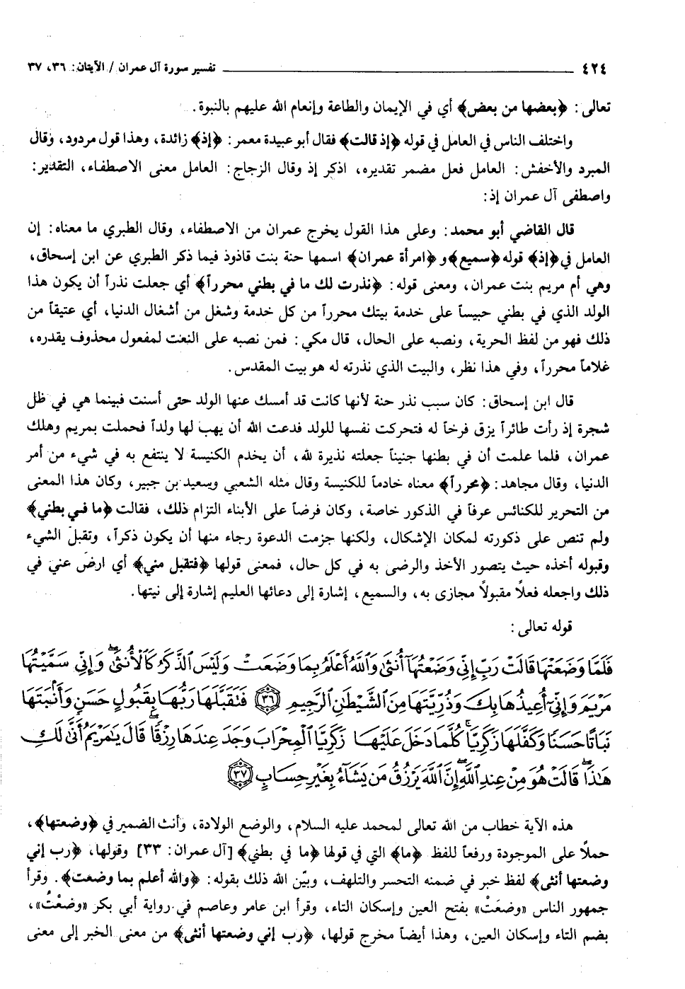 [سورة آل عمران (٣) : الآيات ٣٦ الى ٣٧]