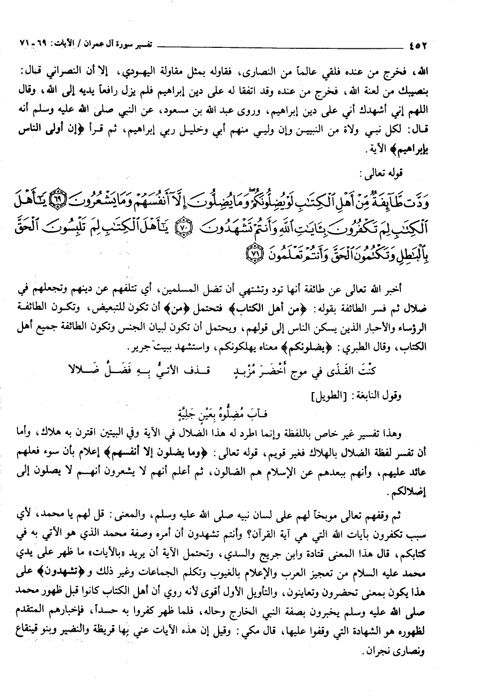 وَدَّتْ طائِفَةٌ مِنْ أَهْلِ الْكِتابِ لَوْ يُضِلُّونَكُمْ وَما يُضِلُّونَ إِلاَّ أَنْفُسَهُمْ وَما يَشْعُرُونَ (٦٩) يا أَهْلَ الْكِتابِ لِمَ تَكْفُرُونَ بِآياتِ اللَّهِ وَأَنْتُمْ تَشْهَدُونَ (٧٠) يا أَهْلَ الْكِتابِ لِمَ تَلْبِسُونَ الْحَقَّ بِالْباطِلِ وَتَكْتُمُونَ الْحَقَّ وَأَنْتُمْ تَعْلَمُونَ (٧١)