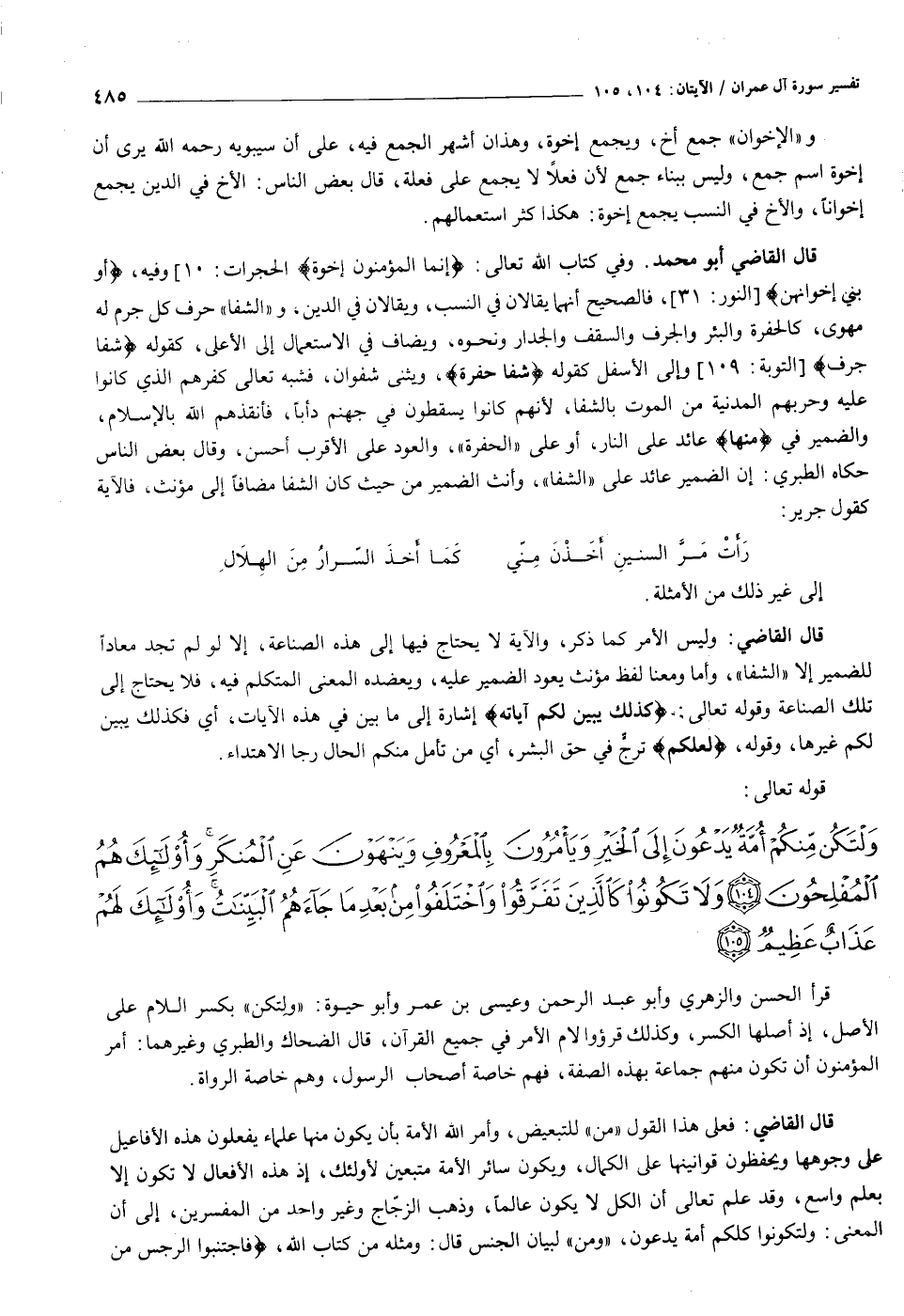 وَلْتَكُنْ مِنْكُمْ أُمَّةٌ يَدْعُونَ إِلَى الْخَيْرِ وَيَأْمُرُونَ بِالْمَعْرُوفِ وَيَنْهَوْنَ عَنِ الْمُنْكَرِ وَأُولئِكَ هُمُ الْمُفْلِحُونَ (١٠٤) وَلا تَكُونُوا كَالَّذِينَ تَفَرَّقُوا وَاخْتَلَفُوا مِنْ بَعْدِ ما جاءَهُمُ الْبَيِّناتُ وَأُولئِكَ لَهُمْ عَذابٌ عَظِيمٌ (١٠٥)