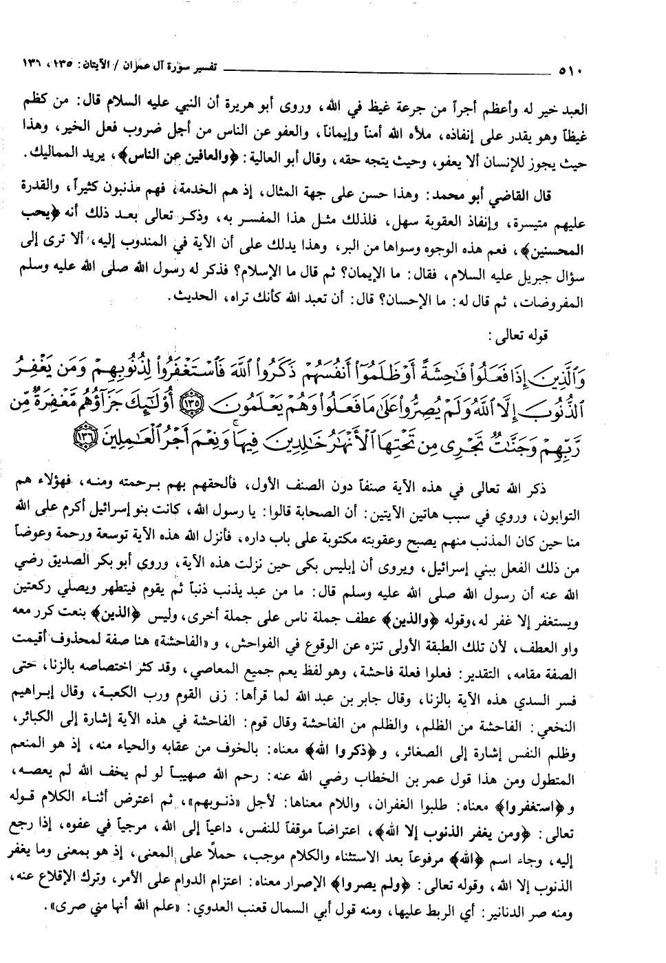 وَالَّذِينَ إِذا فَعَلُوا فاحِشَةً أَوْ ظَلَمُوا أَنْفُسَهُمْ ذَكَرُوا اللَّهَ فَاسْتَغْفَرُوا لِذُنُوبِهِمْ وَمَنْ يَغْفِرُ الذُّنُوبَ إِلاَّ اللَّهُ وَلَمْ يُصِرُّوا عَلى ما فَعَلُوا وَهُمْ يَعْلَمُونَ (١٣٥) أُولئِكَ جَزاؤُهُمْ مَغْفِرَةٌ مِنْ رَبِّهِمْ وَجَنَّاتٌ تَجْرِي مِنْ تَحْتِهَا الْأَنْهارُ خالِدِينَ فِيها وَنِعْمَ أَجْرُ الْعامِلِينَ (١٣٦)
