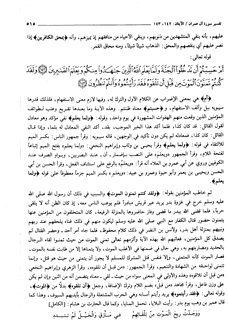 [سورة آل عمران (٣) : الآيات ١٤٢ الى ١٤٣]