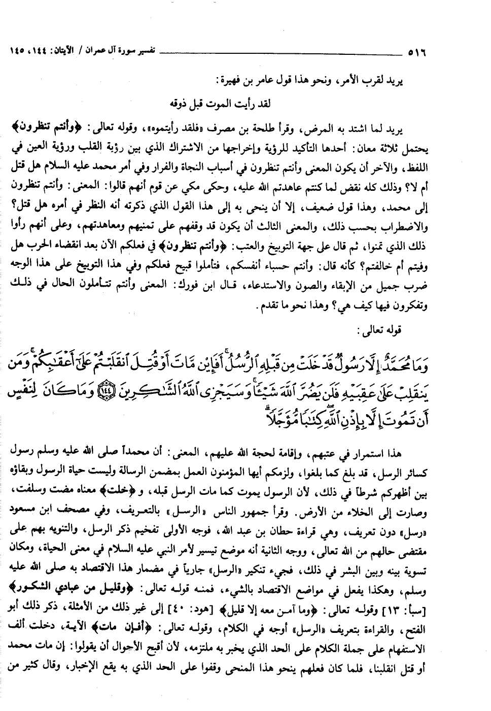 [سورة آل عمران (٣) : الآيات ١٤٤ الى ١٤٥]