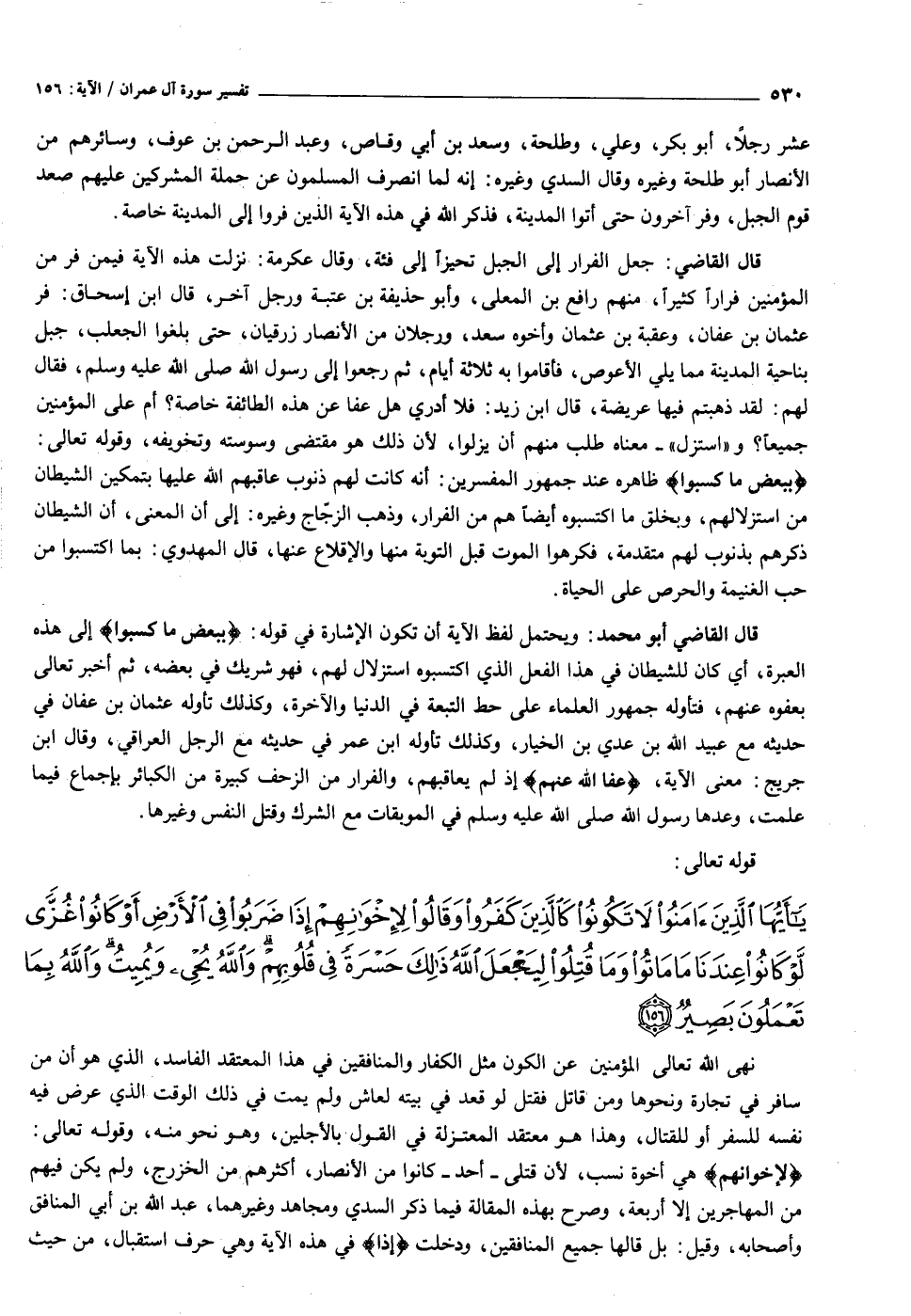 يا أَيُّهَا الَّذِينَ آمَنُوا لا تَكُونُوا كَالَّذِينَ كَفَرُوا وَقالُوا لِإِخْوانِهِمْ إِذا ضَرَبُوا فِي الْأَرْضِ أَوْ كانُوا غُزًّى لَوْ كانُوا عِنْدَنا ما ماتُوا وَما قُتِلُوا لِيَجْعَلَ اللَّهُ ذلِكَ حَسْرَةً فِي قُلُوبِهِمْ وَاللَّهُ يُحْيِي وَيُمِيتُ وَاللَّهُ بِما تَعْمَلُونَ بَصِيرٌ (١٥٦)