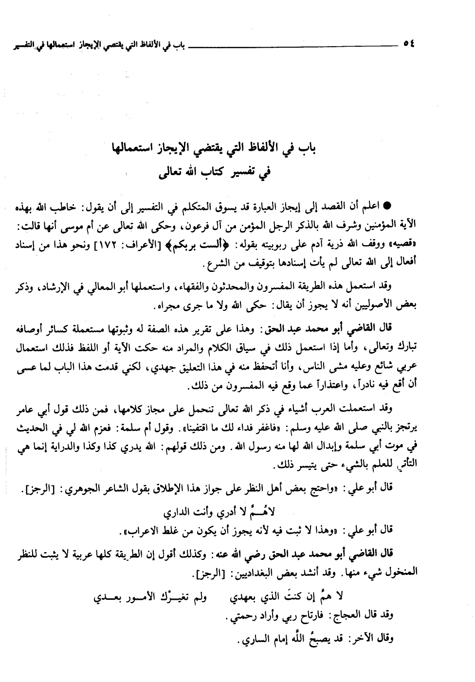 باب في الألفاظ التي يقتضي الإيجاز استعمالها في تفسير كتاب الله تعالى