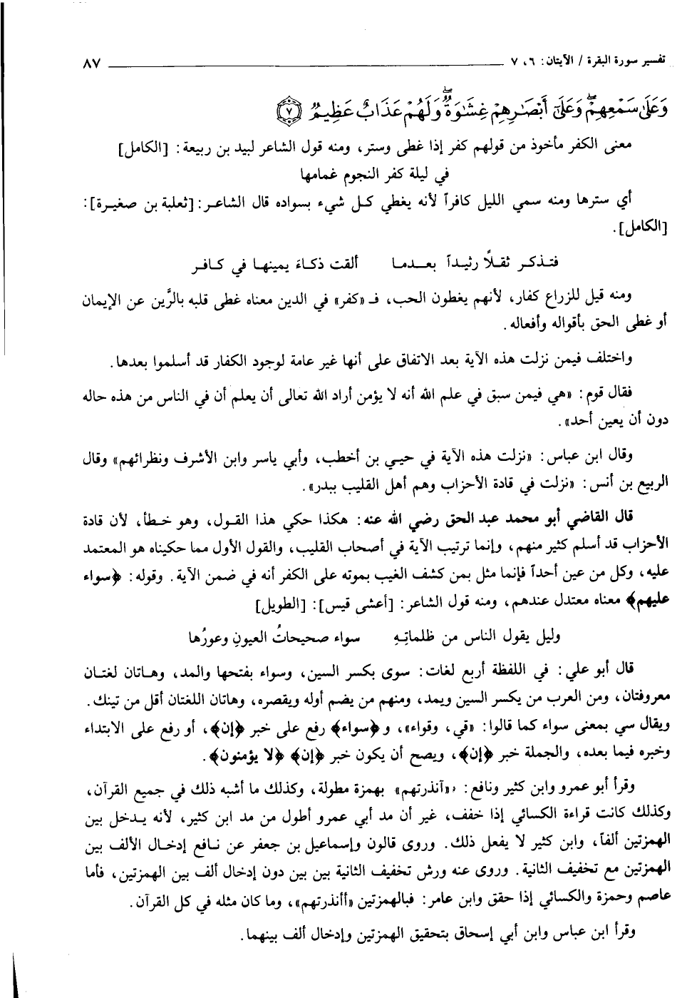 قال القاضي أبو محمد عبد الحق رضي الله عنه: هكذا حكي هذا القول، وهو خطأ، لأن قادة الأحزاب قد أسلم كثير منهم، وإنما ترتيب الآية في أصحاب القليب، والقول الأول مما حكيناه هو المعتمد عليه، وكل من عين أحدا فإنما مثل بمن كشف الغيب بموته على الكفر أنه في ضمن الآية. وقوله: سَواءٌ عَلَيْهِمْ معناه معتدل عندهم، ومنه قول الشاعر: [أعشى قيس] : [الطويل]