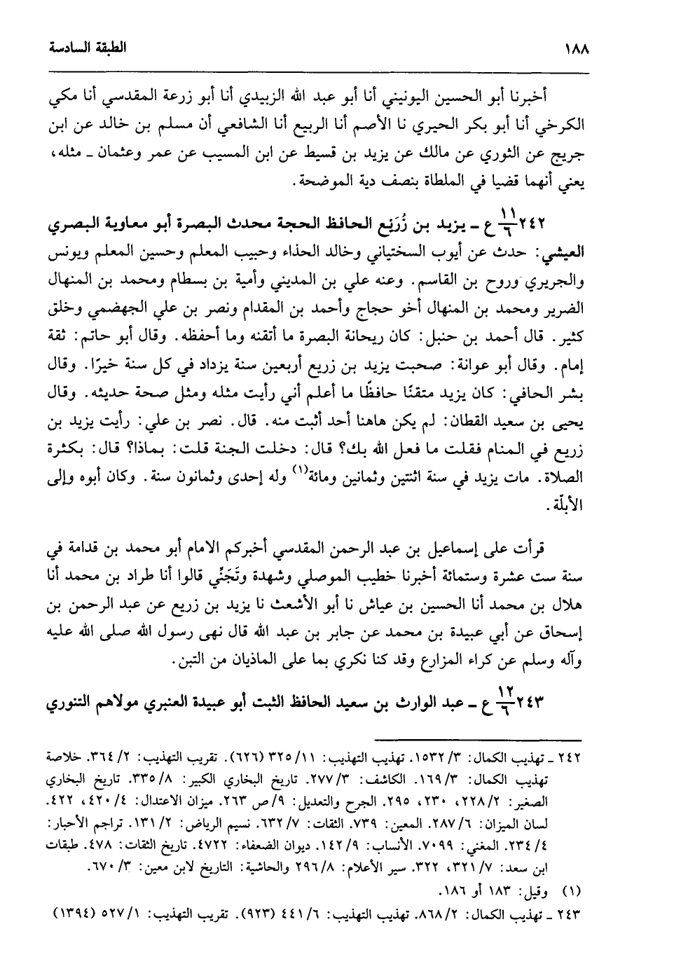 243- 12/ 6 ع- عبد الوارث بن سعيد الحافظ الثبت أبو عبيدة العنبري مولاهم التنوري
