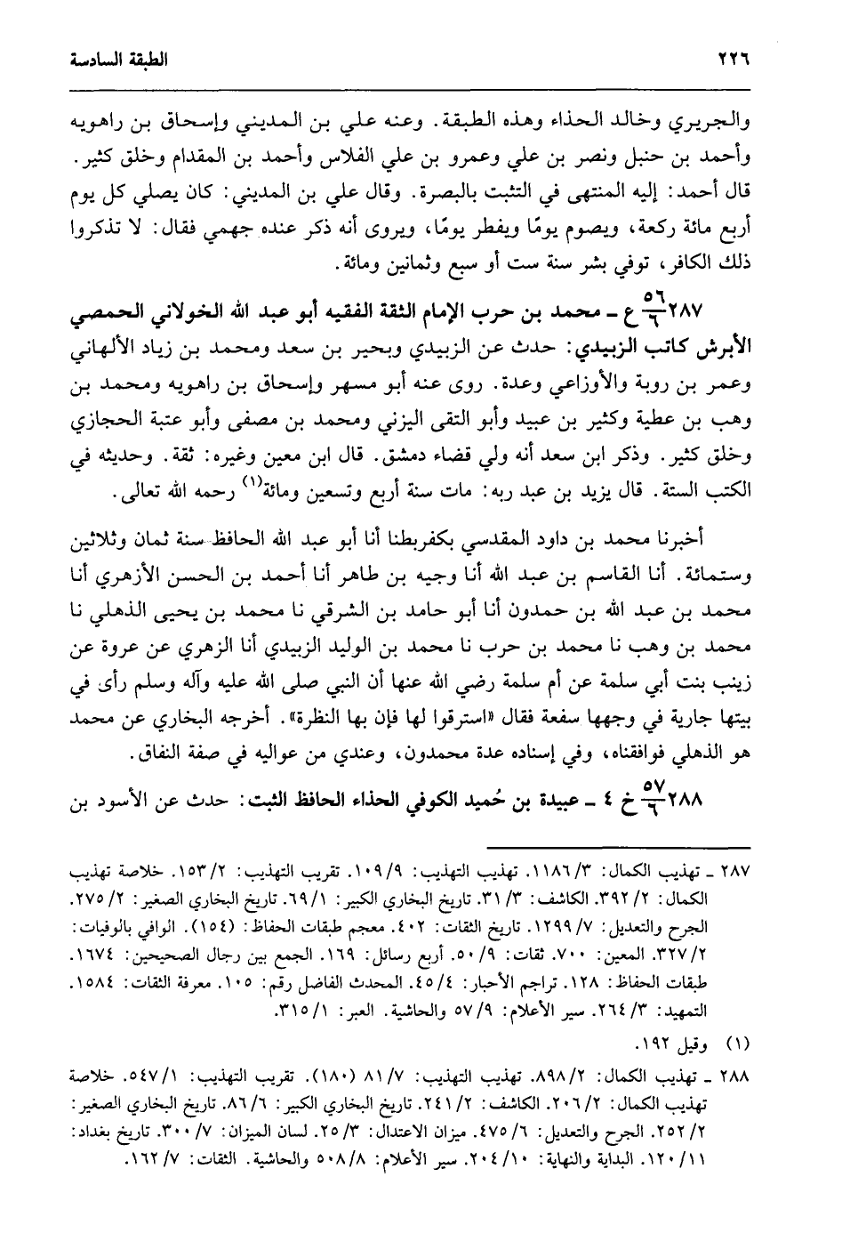 288- تهذيب الكمال: 2/ 898. تهذيب التهذيب: 7/ 81 "180". تقريب التهذيب: 1/ 547. خلاصة تهذيب الكمال: 2/ 206. الكاشف: 2/ 241. تاريخ البخاري الكبير: 6/ 86. تاريخ البخاري الصغير: 2/ 252. الجرح والتعديل: 6/ 475. ميزان الاعتدال: 3/ 25. لسان الميزان: 7/ 300. تاريخ بغداد: 11/ 120. البداية والنهاية: 10/ 204. سير الأعلام: 8/ 508. والحاشية. الثقات: 7/ 162.
