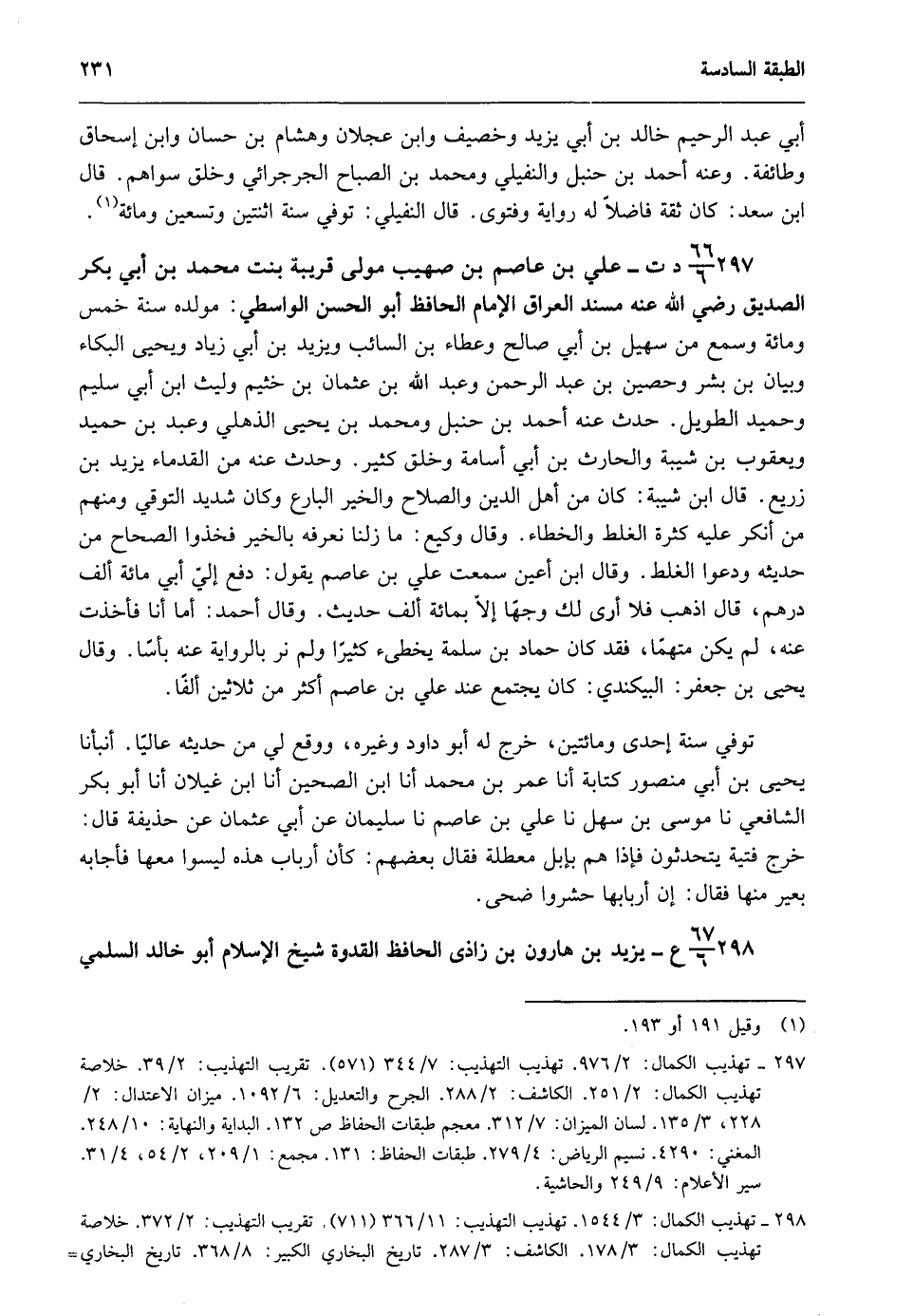 298- 67/ 6ع- يزيد بن هارون بن زاذى الحافظ القدوة شيخ الإسلام أبو خالد السلمي