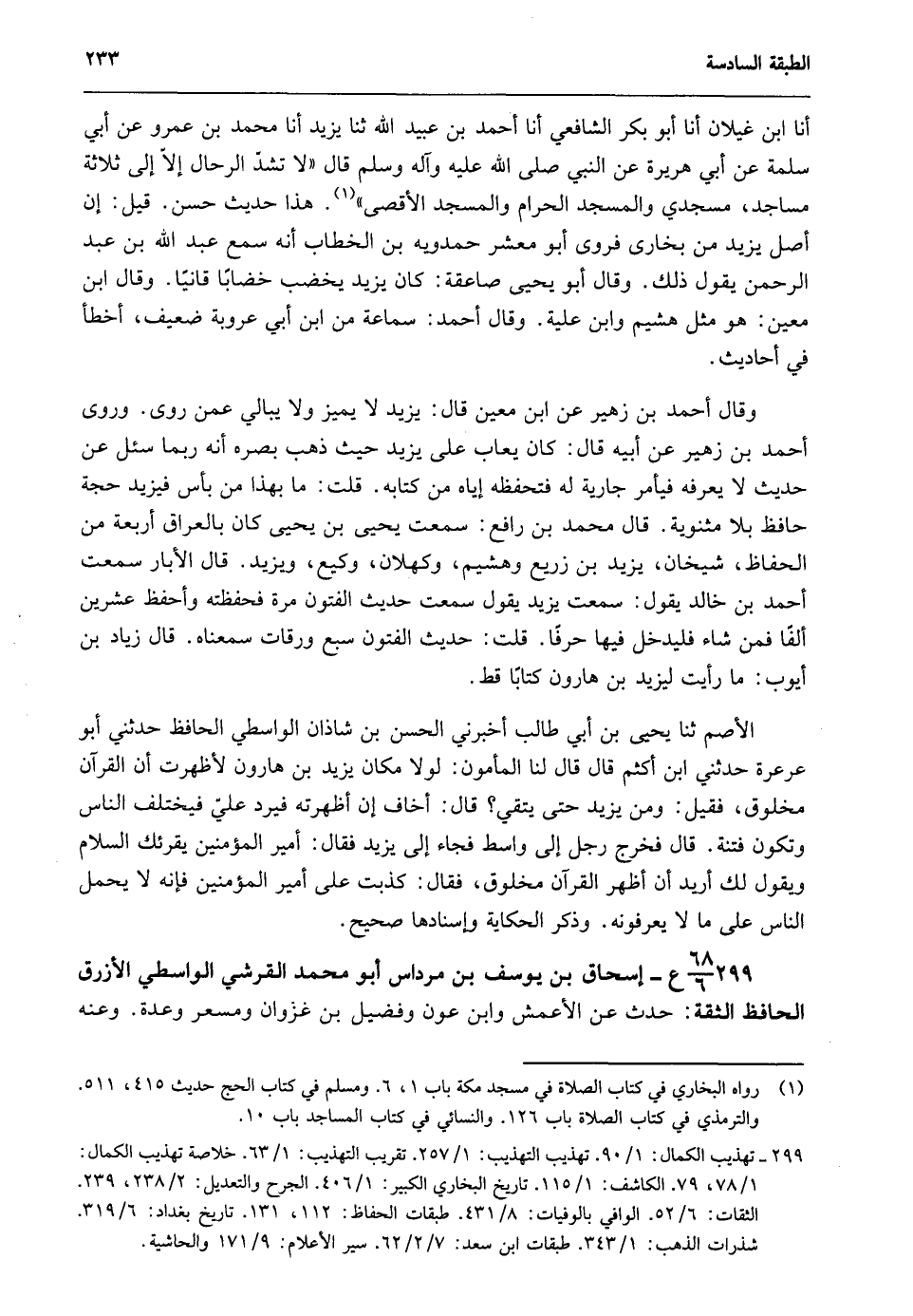 299- 68/ 6ع- إسحاق بن يوسف بن مرداس أبو محمد القرشي الواسطي الأزرق الحافظ الثقة: حدث عن الأعمش وابن عون وفضيل بن غزوان ومسعر وعدة. وعنه