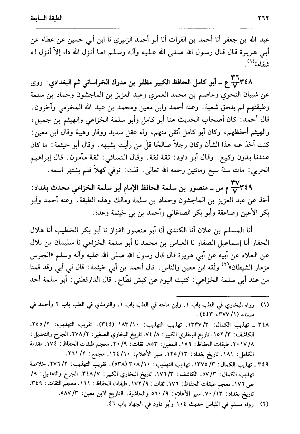 349- 37/ 7 م س - منصور بن سلمة الحافظ الإمام أبو سلمة الخزاعي محدث بغداد: أخذ عن عبد العزيز بن الماجشون وحماد بن سلمة ومالك وهذه الطبقة. وعنه أحمد وأبو بكر الأعين وصاعقة وأبو بكر الصاغاني وأحمد بن أبي خيثمة وعدة.