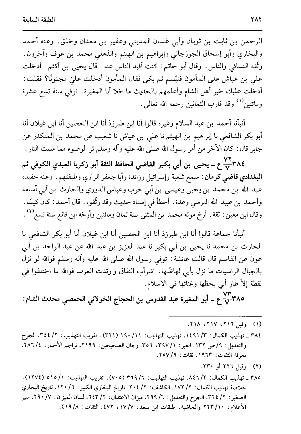 385- 73/ 7 ع- أبو المغيرة عبد القدوس بن الحجاج الخولاني الحمصي محدث الشام:
