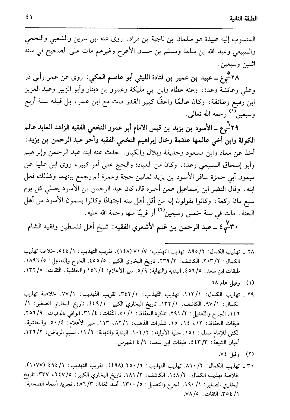 29- تهذيب الكمال: 1/ 112. تهذيب التهذيب: 1/ 324. تقريب التهذيب: 1/ 77. خلاصة تهذيب الكمال: 1/ 97. الكاشف: 1/ 132. تاريخ البخاري الكبير: 1/ 449. تاريخ البخاري الصغير: 1/ 146. الجحر والتعديل: 2/ 291. تذكرة الحفاظ: 1/ 50. الثقات: 4/ 31. الوافي بالوفيات: 9/ 256. طبقات الحفاظ: 12، 14، 15، شذرات الذهب: 1/ 82، 113. سير الأعلام: 4/ 50. والحاشية. الكنى للإمام مسلم: 151. حلية الأولياء: 2/ 102. البداية والنهاية: 9/ 11. نسيم الرياض: 2/ 126. أعيان الشيعة: 3/ 433. طبقات ابن سعد: 9/ 4 الفهرس.