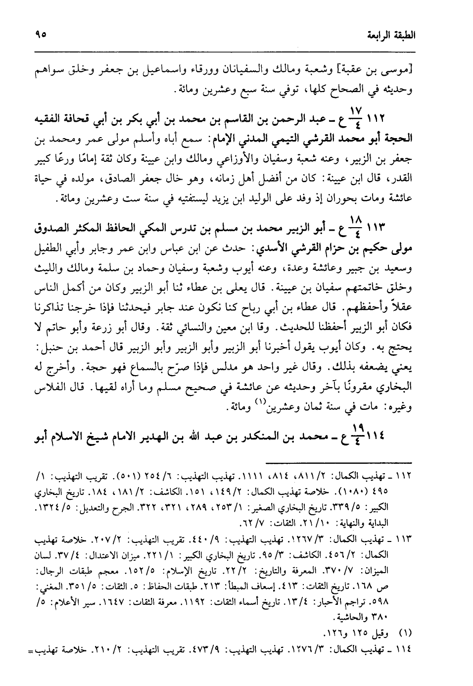 114- 19/ 4ع - محمد بن المنكدر بن عبد الله بن الهدير الإمام شيخ الإسلام أبوعبد الله القرشي التيمي المدني أخو أبي بكر وعمر: