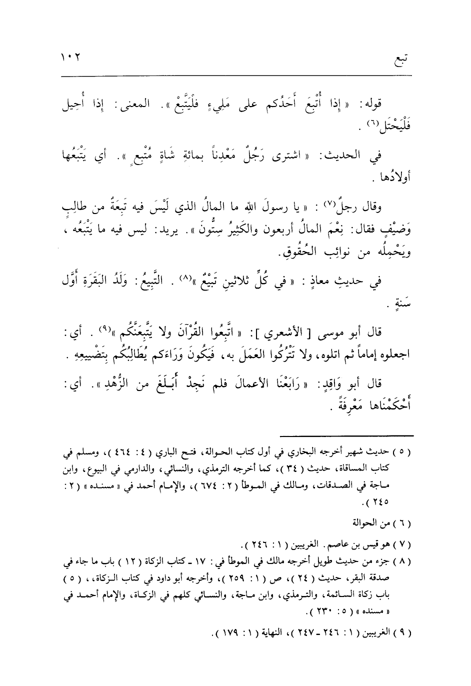 وَقَالَ رجل يَا رَسُول الله مَا المَال الَّذِي لَيْسَ فِيهِ تبعة من طَالب وضيف فَقَالَ نعم المَال أَرْبَعُونَ وَالْكثير سِتُّونَ يُرِيد لَيْسَ فِيهِ مَا يتبعهُ ويحمله من نَوَائِب الْحُقُوق.