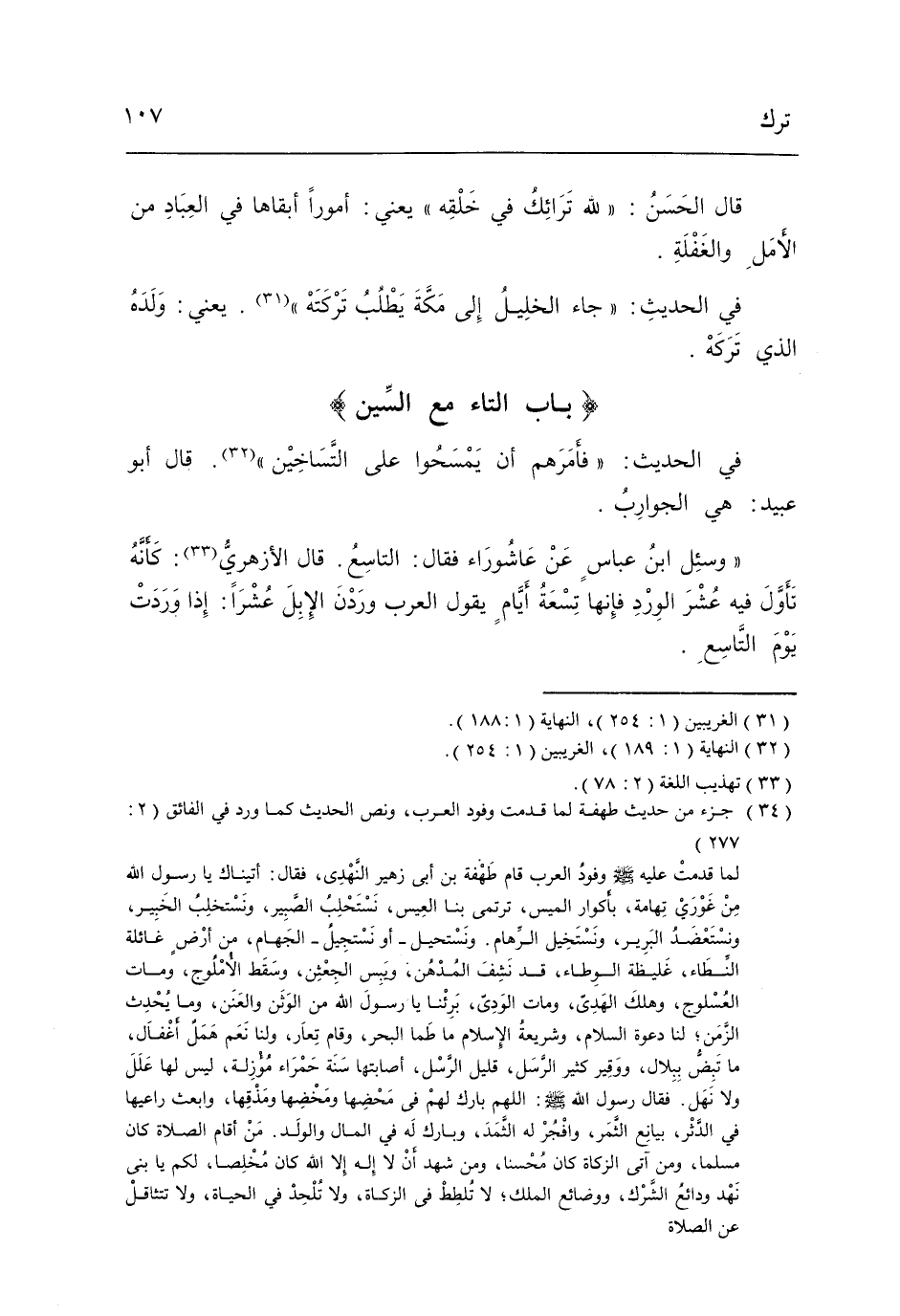 وَسُئِلَ ابْن عَبَّاس عَن عَاشُورَاء فَقَالَ التَّاسِع قَالَ الْأَزْهَرِي كَأَنَّهُ تَأَول فِيهِ عشر الْورْد فَإِنَّهَا تِسْعَة أَيَّام يَقُول الْعَرَب وردن الْإِبِل عشرا إِذا وَردت يَوْم التَّاسِع.