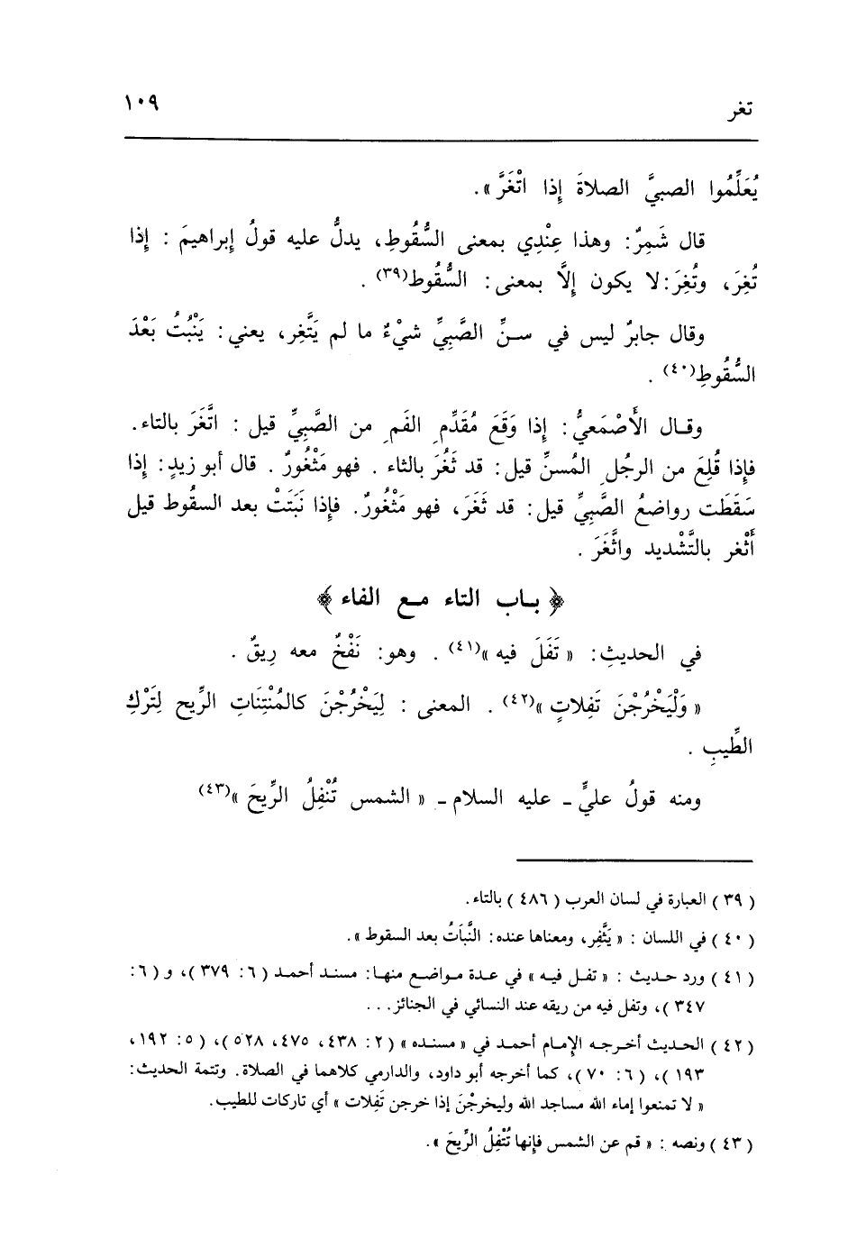 قَالَ شمر وَهَذَا عِنْدِي بِمَعْنى السُّقُوط يدل عَلَيْهِ قَول إِبْرَاهِيم إِذا تغر وتغر لَا يكون إِلَّا بِمَعْنى السُّقُوط.