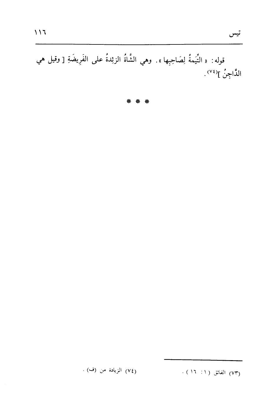 قَوْله التيمة لصَاحِبهَا وَهِي الشَّاة الزئدة عَلَى الْفَرِيضَة وَقيل هِيَ الدَّاجِن.