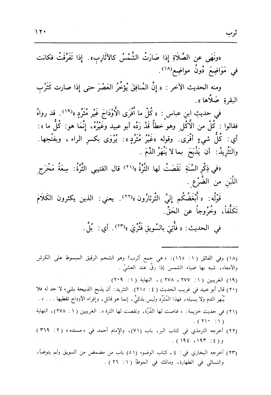 فِي حَدِيث ابْن عَبَّاس كل مَا أفرى الْأَوْدَاج غير مثرد قد رَوَاهُ فَقَالُوا كل من الْأكل وَهُوَ خطأ قد رده أَبُو عبيد وَغَيره إِنَّمَا هُوَ كل مَا أَي كل شَيْء أفرى وَقَوله غير مثرد يرْوَى بِكَسْر الرَّاء وَبِفَتْحِهَا والتثريد أَن يذبح بِمَا لَا ينهر الدَّم.