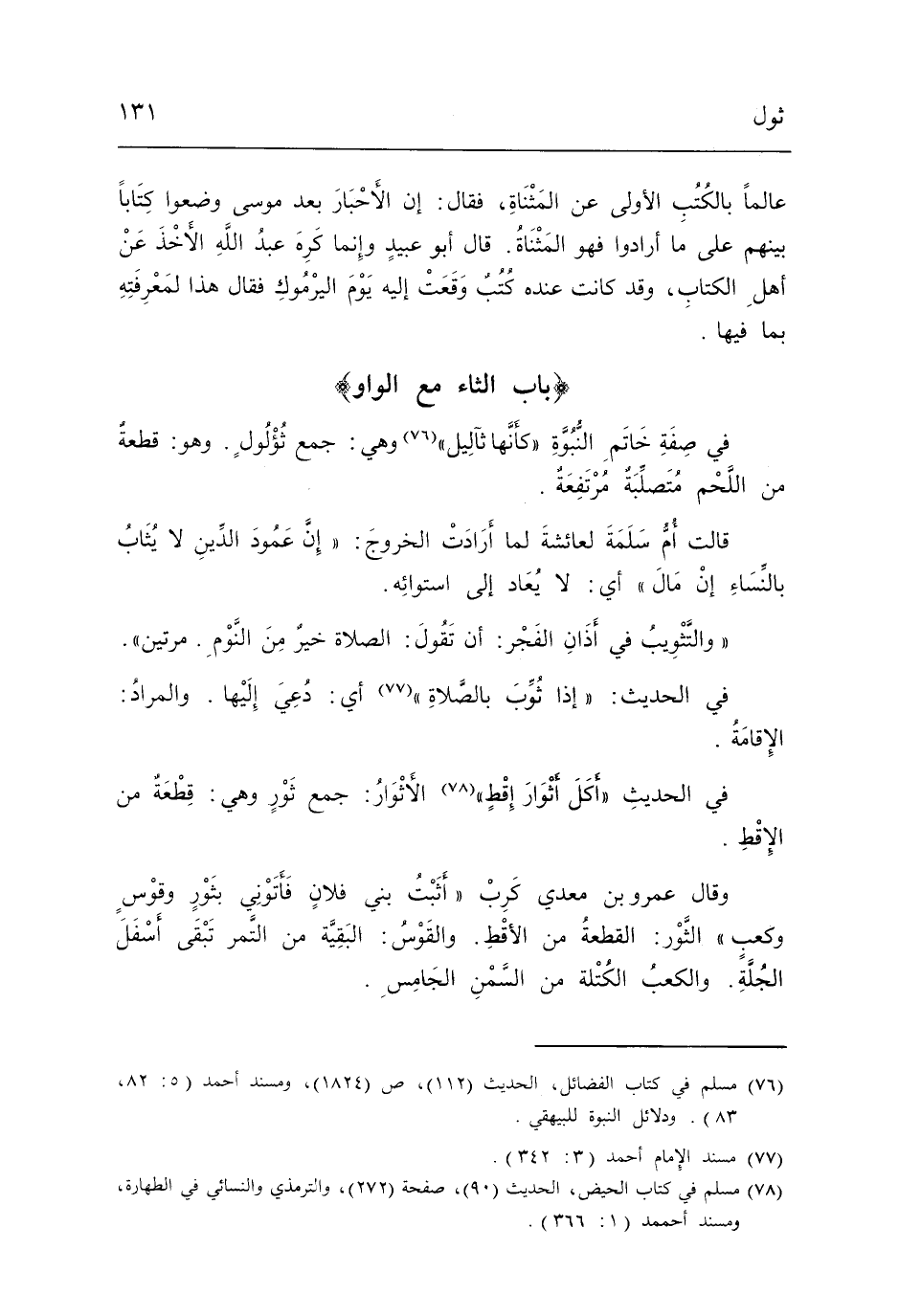 عَالما بالكتب الأولَى عَن الْمُثَنَّاة فَقَالَ إِن الْأَحْبَار بعد مُوسَى وضعُوا كتابا بَينهم عَلَى مَا أَرَادوا فَهُوَ الْمُثَنَّاة قَالَ أَبُو عبيد وَإِنَّمَا كره عبد الله الْأَخْذ عَن أهل الْكتاب وَقد كَانَت عِنْده كتب وَقعت إِلَيْهِ يَوْم اليرموك فَقَالَ هَذَا لمعرفته بِمَا فِيهَا.
