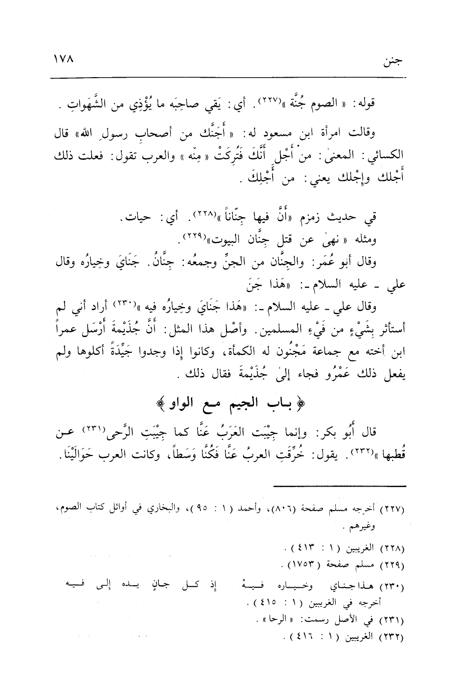 وَقَالَت امْرَأَة ابْن مَسْعُود لَهُ أجنك من أَصْحَاب رَسُول الله قَالَ الْكسَائي الْمَعْنى من أجل أَنَّك فَتركت مِنْهُ وَالْعرب تَقول فعلت ذَلِك أَجلك وإجلك يَعْنِي من أَجلك.