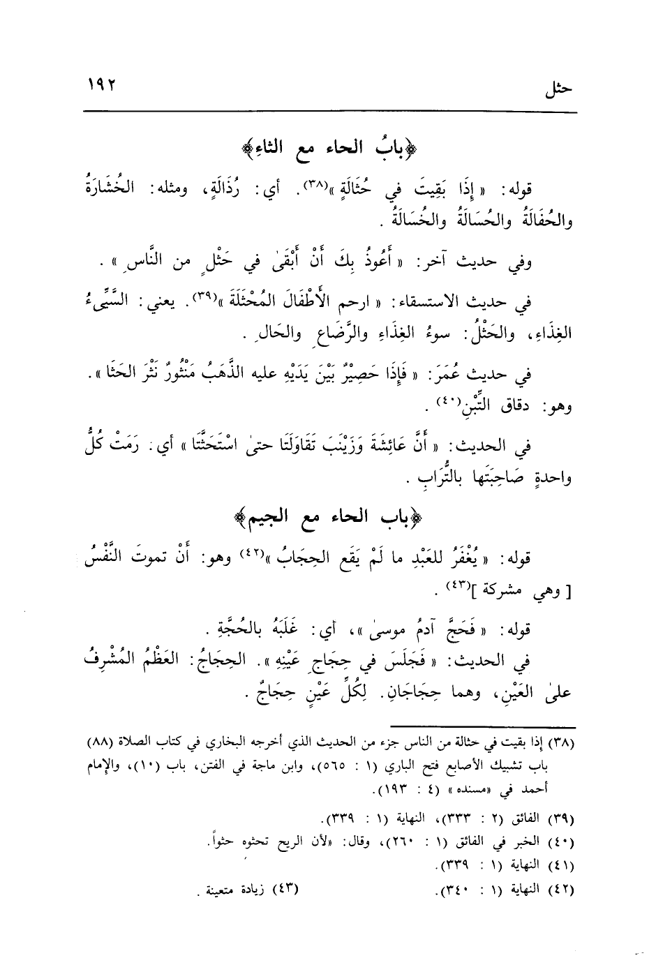 قَوْله إِذا بقيت فِي حثالة أَي رذالة وَمثله الخشارة والحفالة والحسالة والخسالة.