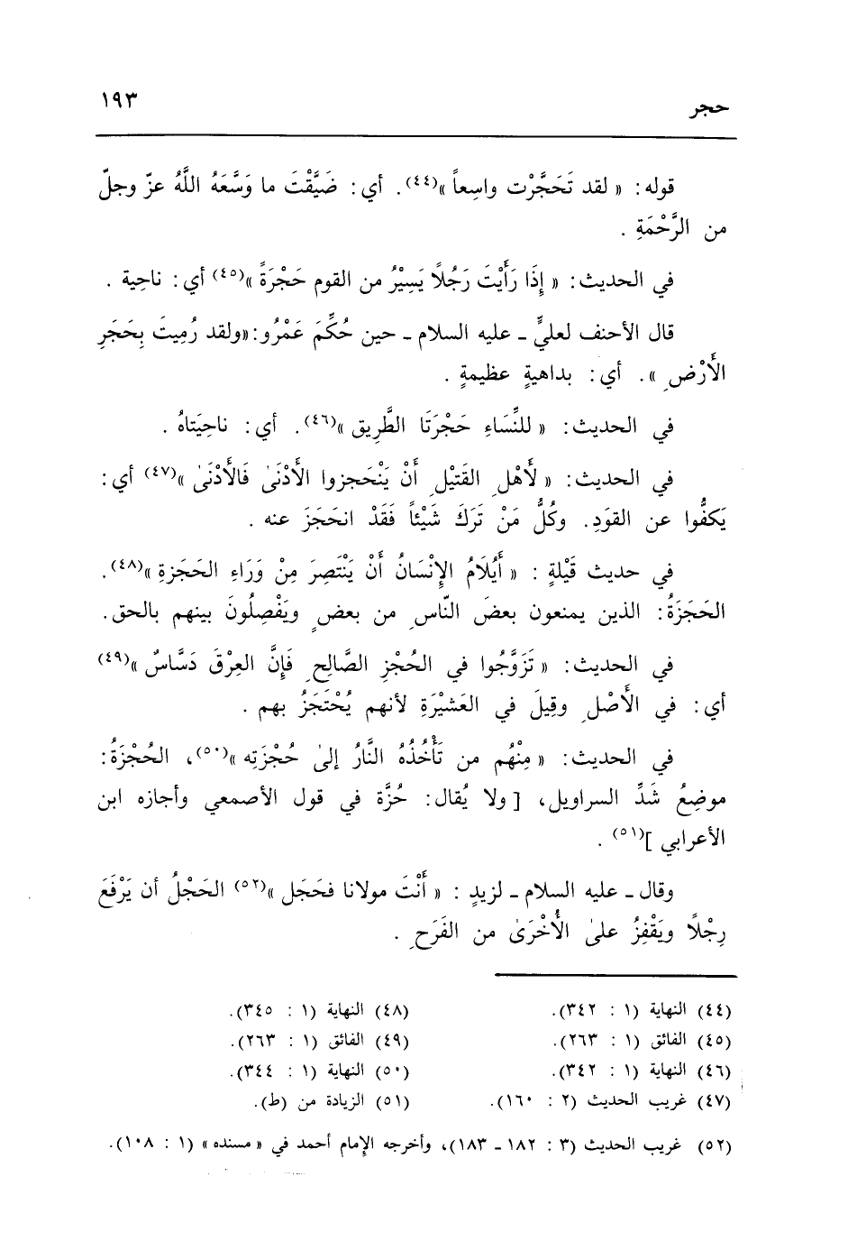 فِي الحَدِيث للنِّسَاء حجرتا الطَّرِيق أَي ناحيتاه.
