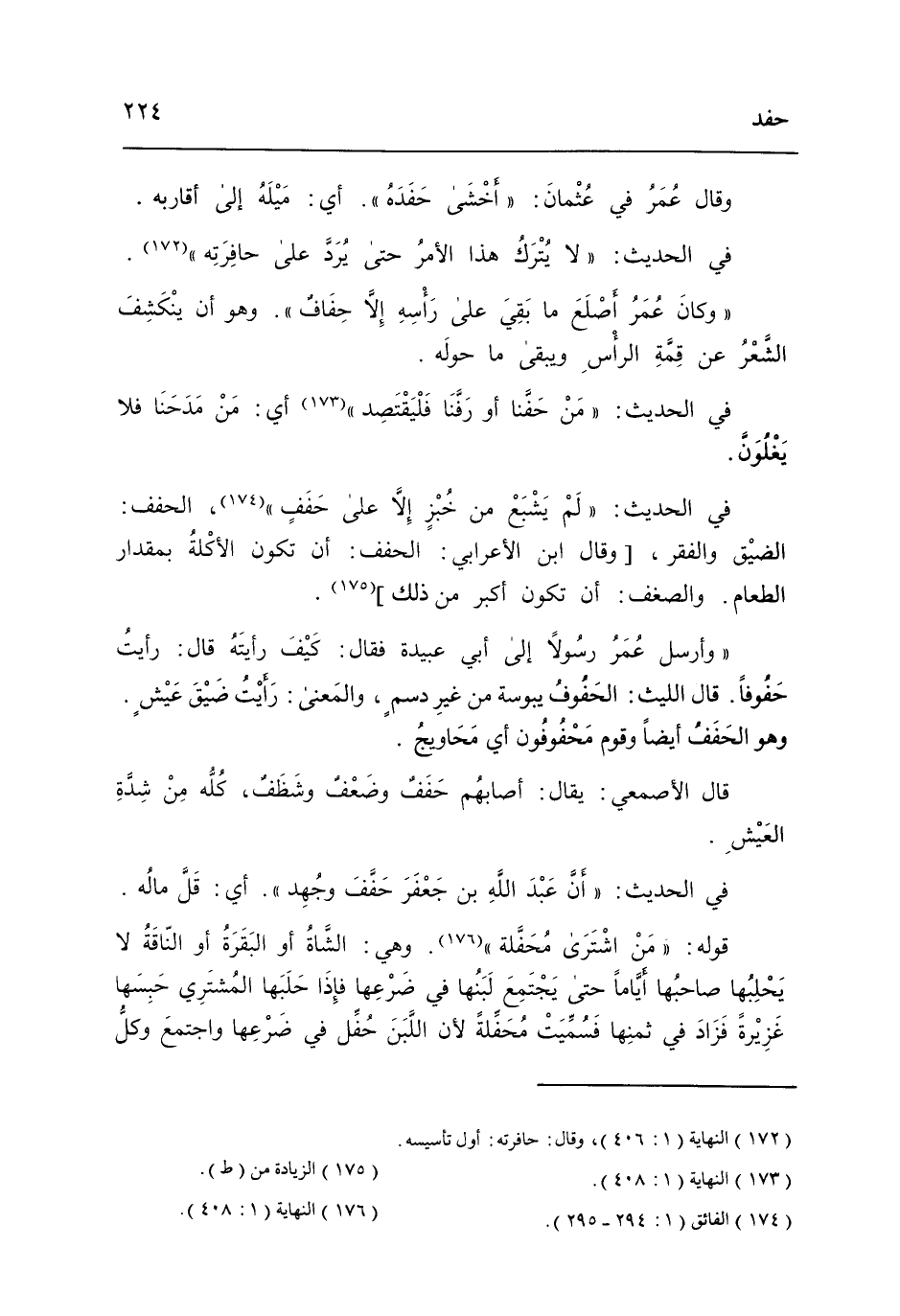 وَأرْسل عمر رَسُولا إِلَى أبي عُبَيْدَة فَقَالَ كَيفَ رَأَيْته قَالَ رَأَيْت حفوفا قَالَ اللَّيْث الحفوف يبوسة من غير دسم وَالْمعْنَى رَأَيْت ضيق عَيْش وَهُوَ الحفف أَيْضا وَقوم محفوفون أَي محاويج.