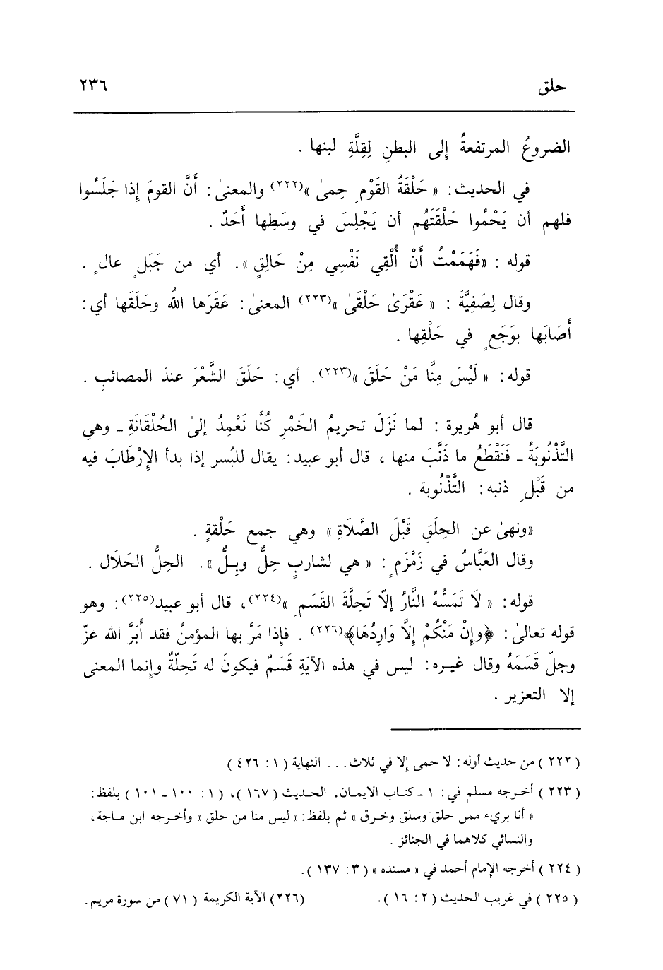 فِي الحَدِيث حَلقَة الْقَوْم حمى وَالْمعْنَى أَن الْقَوْم إِذا جَلَسُوا فَلهم أَن يحموا حلقتهم أَن يجلس فِي وَسطهَا أحد.